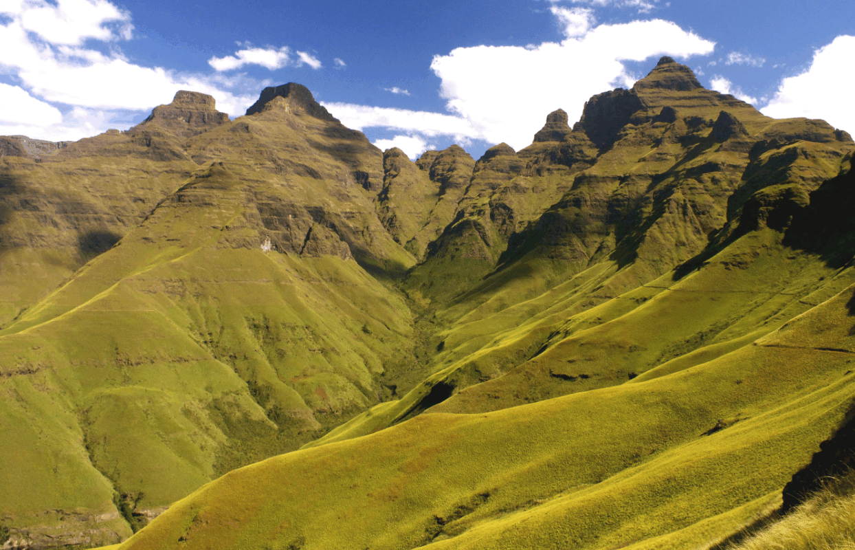 The Drakensberg Mountains stretch across eastern South Africa, forming a natural border between KwaZulu-Natal and the mountain kingdom of Lesotho. They extend over 1,000 kilometres, with some of the most accessible and scenic areas found in the Central Drakensberg. The region is a few hours’ drive from Durban and well-connected for self-drive travellers.